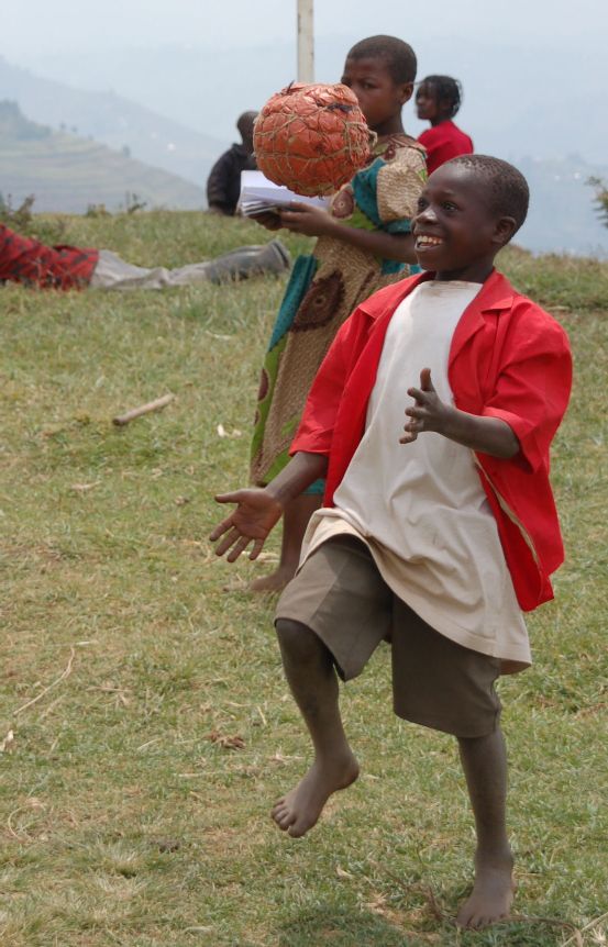 Nadat we bij de chief in zijn huis waren geweest konden we een kijkje nemen in de school. Het was duidelijk te zien dat hier door Europese Unie in geïnvesteerd was. De leerkrachten waren geen Batwa. Zij probeerden de kinderen datgene te onderwijzen, waar ze het meeste aan zouden hebben in het dagelijkse leven. Voornamelijk de Engelse taal en lessen over landbouw en biologie. Vroeger leefden de Batwa in het woud. Nu mag dat niet meer van de regering en hebben ze een vaste woonplaats en bestaan ze van de landbouw. De kinderen zaten op dat moment niet meer in de klassen, maar allemaal op het veld voor de school, te genieten van ons bezoek. We mochten ook nog bij een ander gezin binnen kijken. Deze hut verschilde niet veel van de hut van de chief, maar was nog net een stukje kleiner en er was geen zinken dak of extra keukenhut. We verzamelden daarna voor de school. De gids maakte aan de Batwa duidelijk dat wij giften hadden meegebracht. Van het geld zouden voedingsmiddelen als rijst worden gekocht. Verder hadden we schoolspullen meegenomen en een aantal groepsgenoten gaven nog kleren weg. Die kleren werden door de gids eerlijk verdeeld onder de gezinnen, waar wij bij waren. We zagen dat de mensen deze kleren ook meteen aan deden. Nadat we hadden gezien hoe weinig kledingstukken deze mensen bezitten was dat natuurlijk niet verwonderlijk. Natuurlijk werd ook hier weer voor ons gezongen en gedanst, alleen ditmaal door de volwassenen. Al zingende werden we uitgeleide gedaan toen we het dorp verlieten. Veel kinderen liepen nog een stukje met ons mee de heuvel af. Sommige in hun pas verworven nieuwe shirt of blouse.