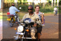 | Met de boda boda (brommer) ging ik voor een paar centen met een aantal groepsgenoten terug naar het Triangle Hotel. Boda boda komt van "border border". Bij sommige grensovergangen is de afstand tussen de grensposten van de beide landen zo groot, dat men fietsen en later brommers ging gebruiken om mensen van de ene post naar de andere post te vervoeren. |