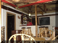| Hier sliepen we in luxe safaritenten met eigen douche en toilet, die aan het meer stonden. Het water voor de douche werd warm gestookt, zoals op veel plaatsen in Afrika, d.m.v. een oven met een vuurtje. We waren er de enige gasten en dus was het een gezellig onder ons onderkomen. Het diner werd geserveerd in de lodge, waar ook een open haard brandde. Het was hier in de bergen fris genoeg om 's avonds binnen te gaan zitten bij dit haardvuur. |