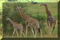 De volgende ochtend vertrokken we om half zeven voor een gamedrive aan de overkant van de Victoria Nijl. We namen de veerboot van 7 uur, die vol stond met minibusjes gevuld met toeristen. Het gedeelte van het park aan deze kant van de rivier was meer savanneachtig. We zagen al vrij snel Rottschild giraffen. Murchison Falls NP is het enige park in Oeganda waar nog giraffen voorkomen. In de tijd van Idi Amin is er heel veel wild afgeslacht, waardoor Oeganda niet het meest geschikte land is om te gamedriven. Even verderop zagen we nog een grote kudde buffels en maakten we kennis met de Oeganda Kob, een antilopensoort, lijkend op de puku of de impala. Ook zagen we nog de zeldzame patas monkey. We hadden heel erg veel geluk toen we later ook nog een mannetjes leeuw en een leeuwin even verderop zagen. Nadat we bij de rivier nog een grote kudde olifanten hadden gezien, met veel jongen, en onze gids bij vissers aan de rivier een aantal tilapia's had gekocht, reden we weer terug naar de veerboot.