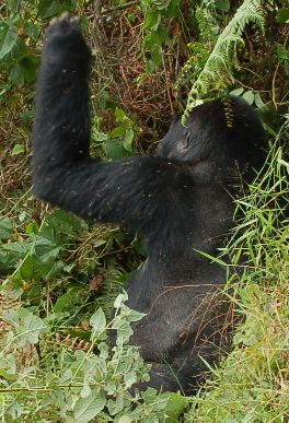 Je komt er maar 1 keer en het duurt maar een uurtje en dat uurtje is zo voorbij. Vlak voordat het uur voorbij was liet de gids ons weten dat terwijl wij nietsvermoedend naar de silverback hadden staan kijken, was er een vrouwtje vlak achter ons was komen staan. Zij had al een tijdje naar ons staan kijken. Toen wij ons omdraaiden bleef ze nog even staan en daarna liep ze heel langzaam weg om verderop te gaan zitten eten. Wat een onbeschrijfelijk gevoel was dit, te weten dat je echt een uur lang tussen de gorilla's bent geweest. Ik kan niet zeggen: "onder de gorilla's bent geweest" want zij gingen gewoon door met hun bezigheden, zij letten verder niet echt op ons. Wij werden alleen toegestaan een uurtje een kijkje te nemen in de gorillakeuken. Jammer dat ze doordat ze elk op hun eigen plek zaten te eten niet zo actief en interactief waren met elkaar, maar het was desondanks een geweldige ervaring. Hier was ik voor gekomen en ik heb ze gezien!